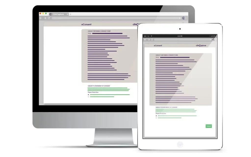 - Facilitates guaranteed signature compliance, remote consent monitoring, and site screening metrics.