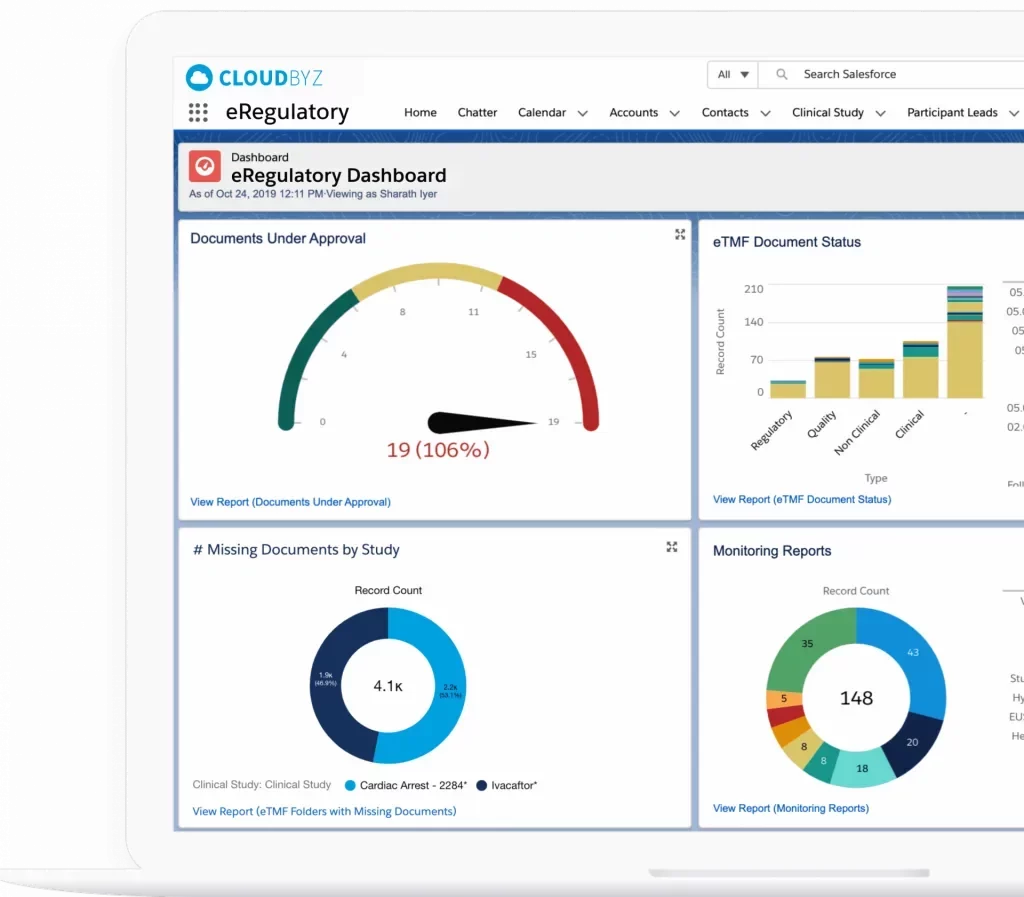 Cloudbyz eRegulatory solution offers a cloud-based repository for all of your clinical trial documents. Digitally capture, manage, share, and store all clinical trial-related documents with a centralized overview. Manage essential trial documents, stay inspection ready, and enable real-time visibility for CROs, sponsors, monitors, and other stakeholders in a clinical trial.